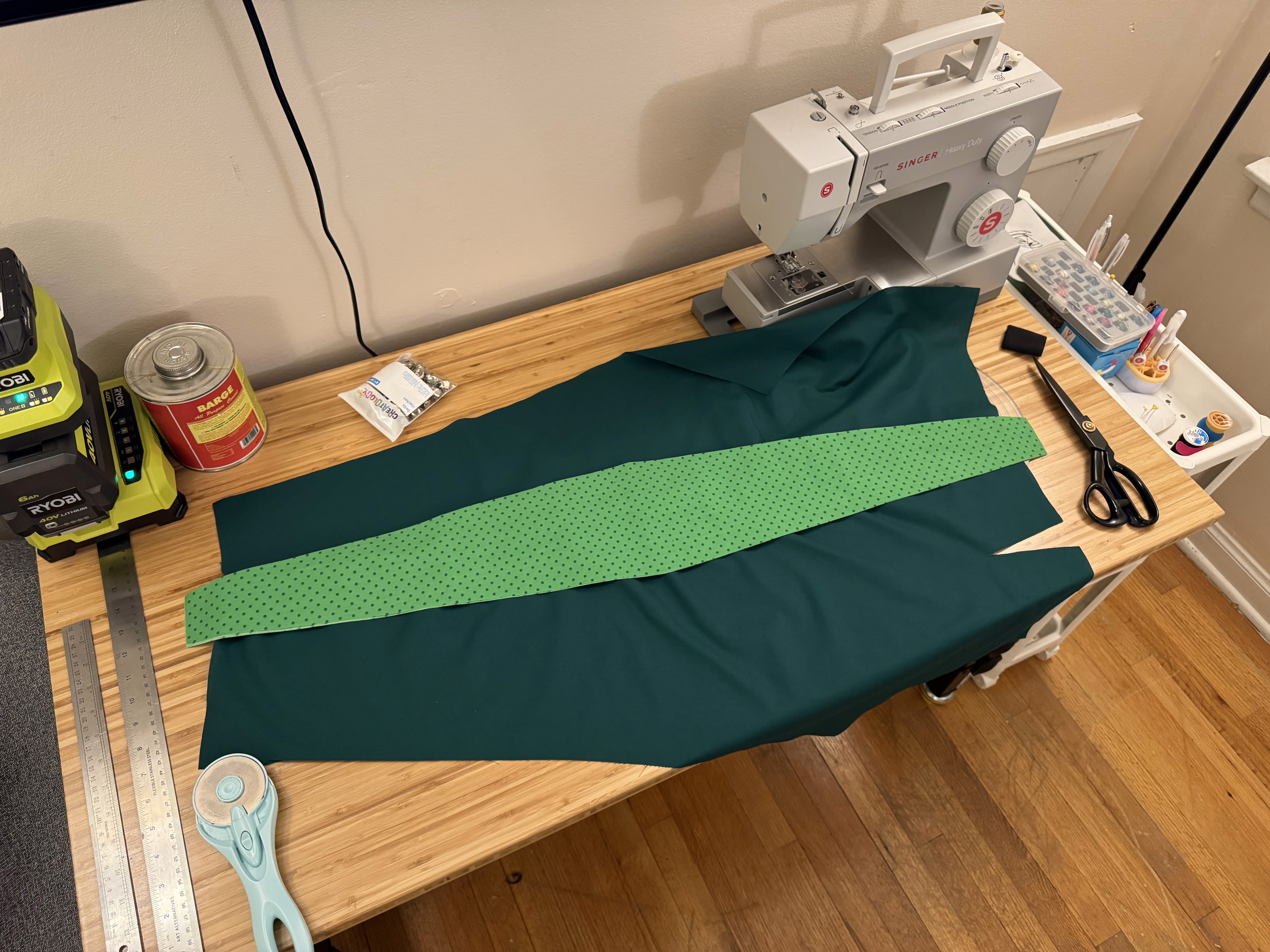 For my materials, I needed to find fabrics that were both lightweight and boldly colored. Thin, shiney satin worked really well for standing out, and for staying cool in the Atlanta heat.